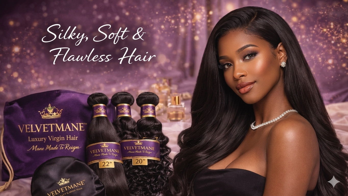 ✔️ Store hair in the provided satin bag when not in use, and avoid excessive heat or chemical processing to extend the life of your VelvetMane hair.